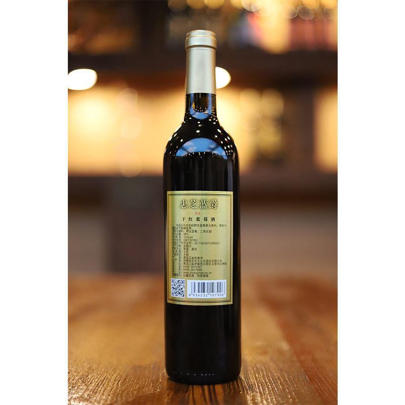 本品以小興安嶺野生藍(lán)莓果為原料,采用傳統(tǒng)工藝與現(xiàn)代科學(xué)技術(shù)相結(jié)合,經(jīng)低溫發(fā)酵陳釀而成,口感醇香濃郁,若有少量沉淀不影響飲用。